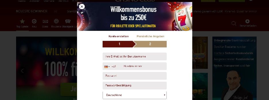 Wer einen Account im Casino Club erstellt hat, kann sich binnen weniger Sekunden mit nur einem Klick einloggen. Die Registrierung ist zudem innerhalb einer Minute erledigt. Lediglich der Name, ein Spielername, das Geburtsdatum und eine gültige E-Mail Adresse sind nötig und schon ist der Account erstellt. Danach kann der erste Login ins Spielerkonto erfolgen.