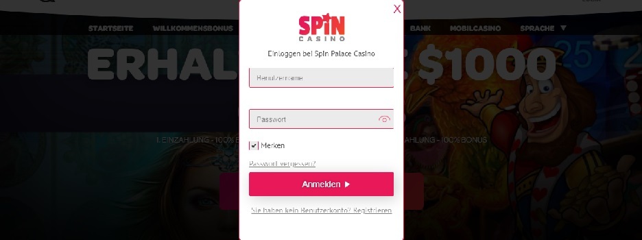 Im Spin Palace Casino geht nichts, ohne sich vorher mit seinem Account einzuloggen. Bevor sich der Spieler einloggen kann, muss er die Registrierung durchführen. Diese ist recht verständlich und in wenigen Minuten vollbracht. Zuerst muss der Neukunde sein Land und seine E-Mail-Adresse eingeben und weiterhin einen Benutzernamen und ein Passwort ausdenken. Anschließend folgt der zweite von insgesamt drei Schritten.