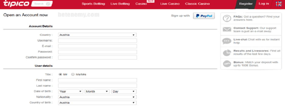Um einen Account für den Login im Tipico Casino erstellen zu können, benötigt man nur wenig Zeit. Angaben zum Geburtsdatum, dem vollständigen Namen sowie ein Pseudonym und eine gültige E-Mail Adresse sind dabei jedoch Pflicht. Einloggen können sich die Kunden gleich nach der Bestätigung der E-Mail Adresse.