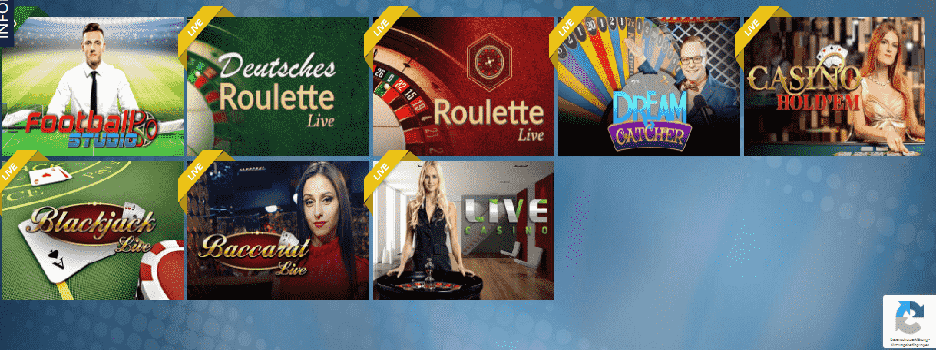 Im Bereich Live Casino befinden sich aktuell sieben Tische mit verschiedenen Spielen. Neben Roulette, Black Jack und Baccarat können auch Wetteinsätze im Live Football Studio getätigt werden. Die Provider Evolution Gaming und NetEnt stellen Live Tische zur Verfügung. Durch hochwertiges Live Streaming landen echte Dealer am Bildschirm des Spielers. Diese sind kompetent und freundlich, wodurch eine Stimmung wie in der realen Spielbank erzeugt wird. Mit Mitspielern und den Croupiers kann während dem Spielen gechattet werden, wodurch ein hoher Unterhaltungswert entsteht.